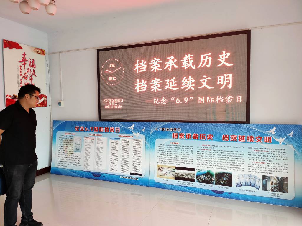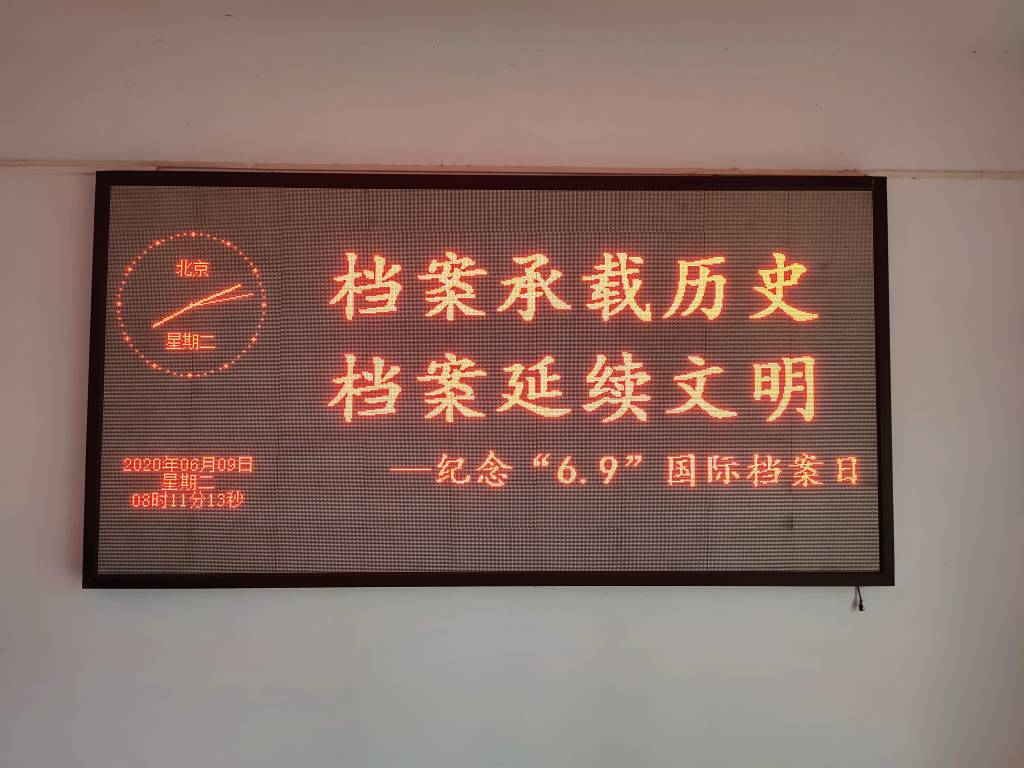 二是通过电子显示屏将档案标语“档案承载历史,档案延续文明”进行滚动播放,宣传档案工作的重要性,帮助师生树立档案意识,提高公众知晓度和影响力,提高师生的档案保护意识,从而形成人人爱惜档案、保护档案、利用档案的良好氛围。