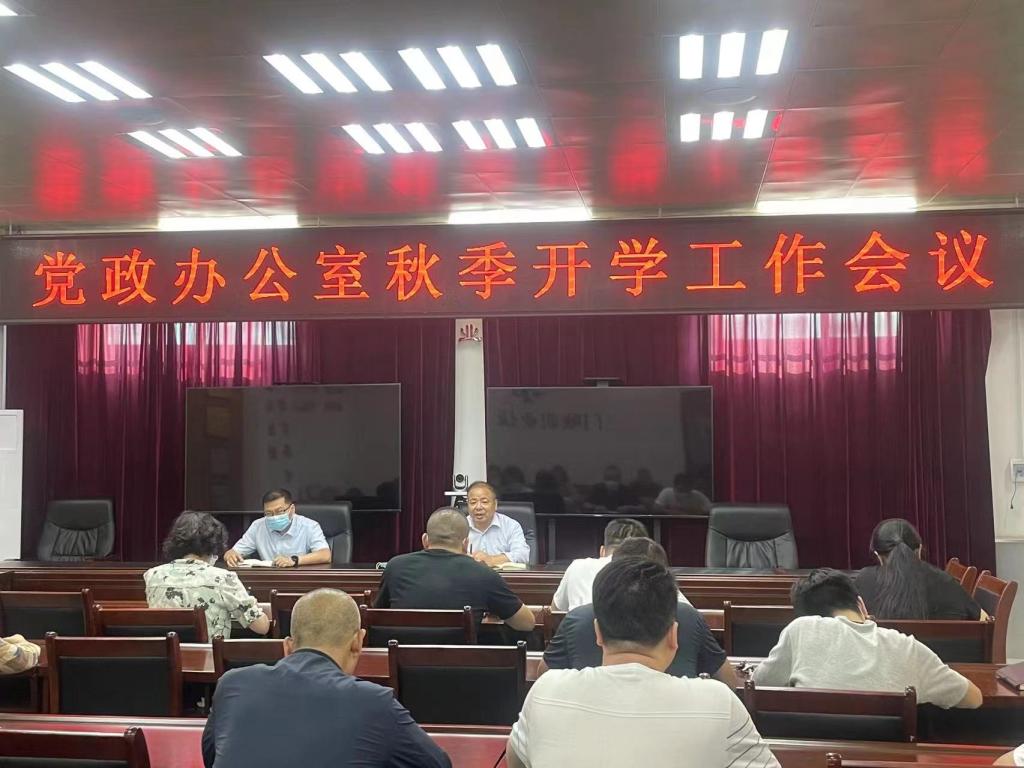 9月14日下午,党政办公室在荣誉室召开下半年工作推进会,总结暑假主要工作完成情况,安排推进下半年各项工作。全体人员参加会议,党委委员袁文山主持会议并讲话。