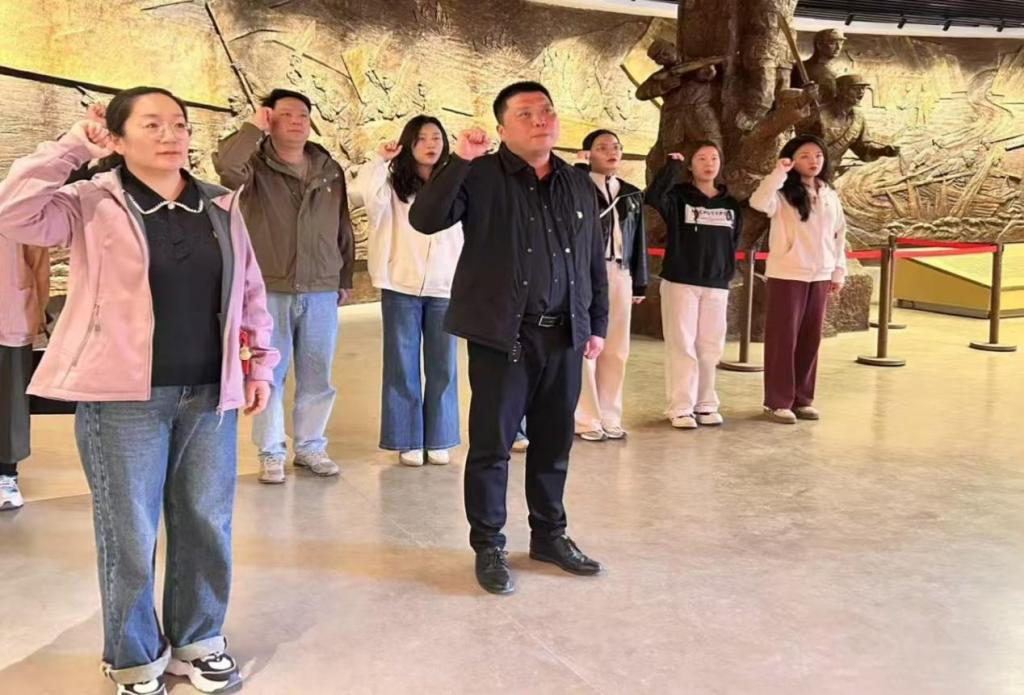 活动中,怀着对革命先烈们无比的敬意和无限的哀思,全体党员整齐列队,面对鲜红党旗,重温入党誓词,随后在陵园讲解员的引导下参观革命烈士纪念馆。馆内陈列的烈士遗物、战斗场景复原及珍贵影像资料,生动再现了陕县革命史。党员们驻足于展柜前,聆听“血战宫前”“智取陕州”等红色故事,深刻体悟革命先辈“为有牺牲多壮志”的信仰力量。深切感受到革命前辈为民族大义视死如归、英勇无畏的革命精神和至高无上的爱国情怀。党员们纷纷表示,要以革命先烈为榜样,传承和弘扬他们的精神,把对先烈的追思和敬意转化为工作的动力。